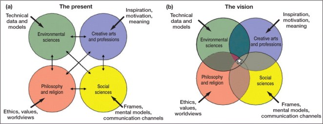 New social network technologies appear to provide an important means to make visible and increase the level of discourse surrounding valuable new art and ecology practices and in particular to those who are or are beginning to engage in ideas about climate change and natural resource limitations. In recent meetings held during 2009, a 16-member quorum of scientists, scholars and professionals representing several universities in the United States proposed a ‘Four Culture Synergy for engaging society on climate change’ (Nesbit et al., 2010). In their proposal there are strong and developing arguments to suggest a critical role for social media to rapidly connect cultural strategies with three other disciplines, environmental sciences, philosophy and religion, and the social sciences, to more effectively engage the public in climate change. These researchers acknowledge strategies, resources and funding must be allocated for such initiatives to succeed.