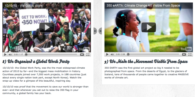 Fig. 2 Some of the recent projects where 350.org has combined the power of art and social media globally to respond to climate change (source: www.350.org, 2011)
