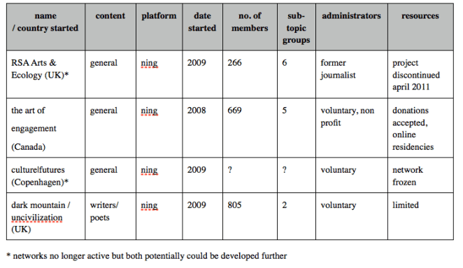 Table 1. Selection of online Art and Ecology Networks as of January 2011