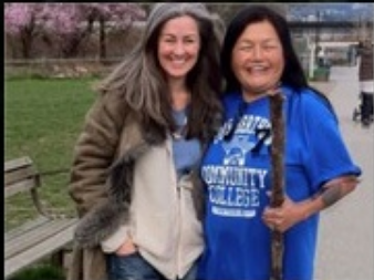 Polly Higgins and Indigenous activist Raven Courtney (2012) working to spread news about ecocide law in Canada and North America