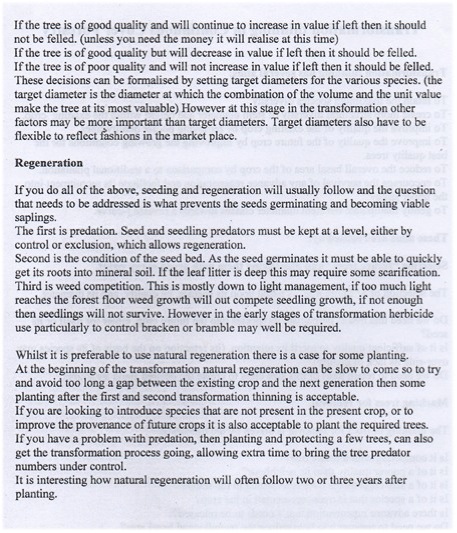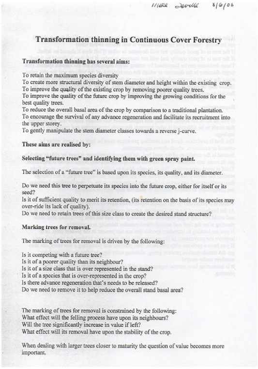 Here is the three sheets I gave to all that attended (the last two sheets are notes Jan gave us all on the basics of Transformation thinning in Continuous Cover forestry).