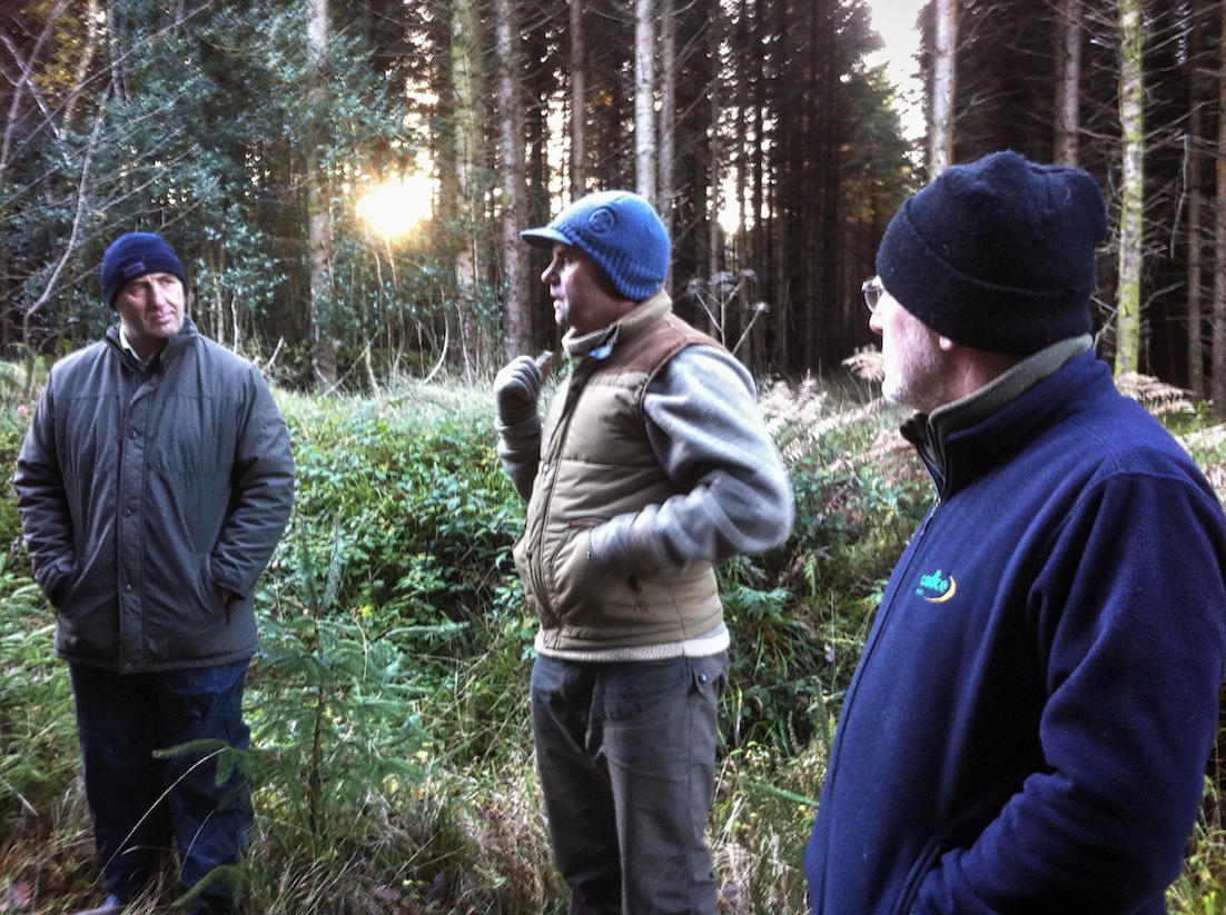Last week I was excited to take part in the first tree-marking training days for the COFORD (Council for Forest Research and Development, Ireland) Low Impact Silvicultural Systems (LISS) project in Ireland. Hollywood is one of the forests on the database, along with other plantation sites across Ireland that are being transformed, in various degrees, to non clearfell, permanent forests. Close to 300 sites, comprising a mix of commercial, privately owned and Coillte (Ireland’s large semi-state forests) sites, are being tracked for this project. (See an overview and update of the LISS project here)