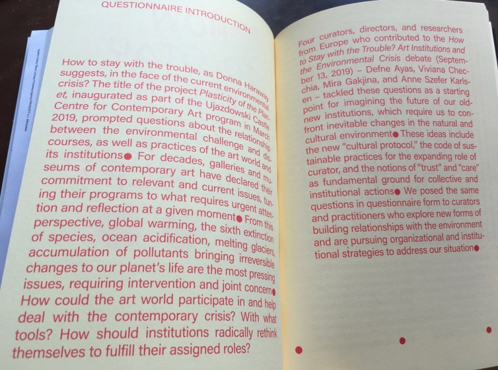 Update: So delighted to share the new book “Plasticity of the Planet: On Environmental Challenge for Art and Its Institutions” designed by Honza Zamojski published by Mousse has been nominated for two categories for Polish Graphic Design Award: “Publication of the Year” and “Project of the Year”! https://www.polishgraphicdesign.com/2019/projekt2019