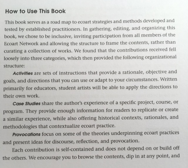 So I was delighted that not long after I had joined that there was an invitation to all international EcoArt members to contribute to the first ever comprehensive Ecological Art Practice book.