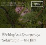 #FridayArt4Emergency: ‘Solastalgia’ – the film August 30, 2019 - With Greta Thunberg and children schoolstriking every Friday across the world, I will likewise post an art practice every Friday that I feel touches audiences and inspires creative workers too. First up, a stunning new short film ‘Solastalgia’ via #FridayArt4Emergency: ‘Solastalgia’ – the film